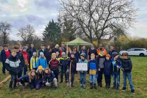 Auf der Streuobstwiese mit alten Obstbäumen, traditionell am Ortseingang von Trettendorf, Gemeinde Roßtal, fand eine Umweltbildungs-Pflanzaktion statt: Schüler*innen der 4 b wanderten mit ihrer Lehrerin aus der Grundschule Roßtal hierher, um die Streuobstwiese durch die Pflanzung von zusätzlichen jungen Zwetschgenbäumen „zu verjüngen“. Empfangen wurden sie vom Bürgermeister Gegner, Engagierten der Bürgerstiftung Roßtal und Mitarbeitenden des Bauhofs. Die Mitarbeiterinnen des Landschaftspflegeverbands Mittelfranken Franziska Schill und Antonia Langguth erklärten bei der gemeinsamen Pflanzung der ersten jungen Zwetschge, worauf es bei der Pflanzung von Obstbäumen zu achten gilt. Und dann ging‘s los: innerhalb kürzester Zeit wandten die Schüler*innen in Kleingruppen das Erklärte an, arbeiteten zusammen in Kleingruppen und pflanzten „ihren“ Zwetschgenbaum, dem sie von nun an beim Wachsen zuschauen können.