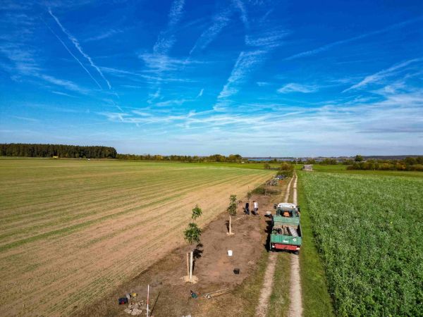 Eine Woche später fand in Emetzheim auf dem Betrieb Kirsch ein weiterer Aktionstag statt. Dieses Mal ging es vor allem um Wissensvermittlung vor Ort durch Anschauungsflächen. Dabei gab es mehrere Stationen, welche die Aktivitäten des Landwirts Matthias Kirsch zum Humusaufbau und zur Biodiversität zeigte. Der LPV hat am Aktionstag mehrere Obstbäume gepflanzt und die fachlich korrekte Pflanzung demonstriert. Besucher konnten von Station zu Station wechseln und sich informieren und austauschen.