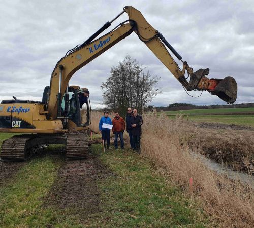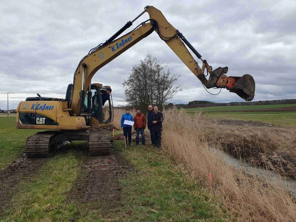 Auf einer Länge von rund 1 km wurde die Seebach bei Großenseebach renaturiert. Mit dem Kettenbagger wurden neue Bachschleifen angelegt und die Ufer abgeflacht. So kann der Bach wieder eine erhöhte Eigendynamik entwickeln. Die Voraussetzungen sind gut: Bereits bei der Flurbereinigung 1993/94 wurde beidseits des Bachs über weite Strecken ein bis zu 10 m breiter Streifen als gemeindeeigenes Flurstück ausgewiesen. Hier ist also genug „Spielraum“ für Landschaftspflegemaßnahmen. Die Seebach ist früher in vielen großen Bachschleifen gemächlich durch den Wiesengrund geflossen. In den 1940er Jahren hat der „Reichsarbeitsdienst“ die Seebach begradigt, um große, leicht zu bewirtschaftende Grundstücke zu erhalten. Damit sich der Bach nicht allzu sehr eingräbt, wurde die Bachsohle mit Felsplatten befestigt.