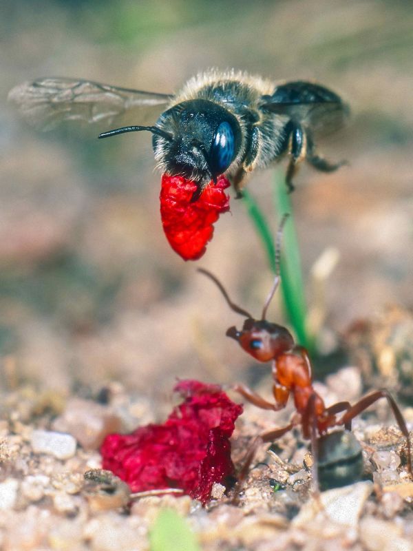 Auch mit der Mohnbiene (Osmia papaveris) kehrt eine ausgesprochene Rarität zurück. Noch vor 20 Jahren gab es einen einzigen bayerischen Fundort im Landkreis Coburg. 2012 wurde dann der weltweit größte Bestand bei Kemmern im Landkreis Bamberg entdeckt. Auf der Tagung in Fürth berichteten nun mehrere Teilnehmer*innen, dass in ihrem Gebiet in Sandlebensräumen Mohnbienen entdeckt wurden. Sie graben ihre Bruthöhlen im etwas festeren Sand und kleiden diese mit Blütenstücken des Klatschmohns aus. Dafür benötigen sie Sandwege, wo der Sand durch Tritt oder Befahren zusammengepresst wird. Durch die Befestigung mit Kalkschotter werden solche Lebensräume leider häufig zerstört.