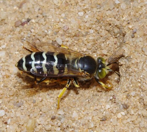 Auch die Kreiselwespe (Bembix rostrata) wandert wieder in die Sandbiotope ein. Zu Beginn des Projektes SandAchse Franken im Jahr 2000 gab es laut dem Insektenexperten Andreas Niedling vom Landschaftspflegeverband Forchheim nur zwei Fundorte der Art in Erlangen und bei Bamberg. Heute kommt sie fast überall auf Lockersanden vor, wo sie ihre Brutröhren in den Sand gräbt. Sie ist gefährdet durch Insektizide und durch den Einsatz von zu viel (Kunst-) Dünger, was zum Zuwachsen offener Sande führt.