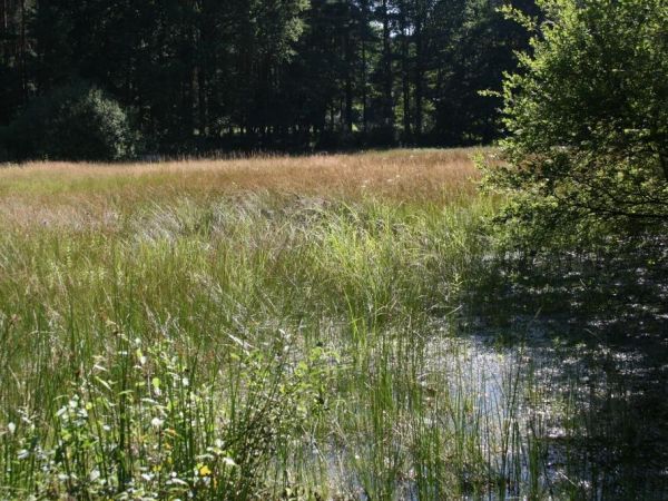 Aufgelassene Weiher verlanden und entwickeln sich häufig zu Niedermooren, die nur noch selten von Wasser überstaut werden. Hier bilden die Torfmoose dicke Polster.