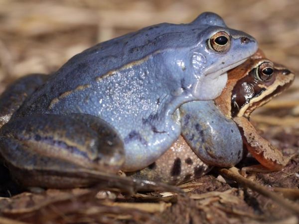Während der Laichzeit sind die Männchen des Moorfrosches blau gefärbt – ein einmaliges Naturschauspiel!
