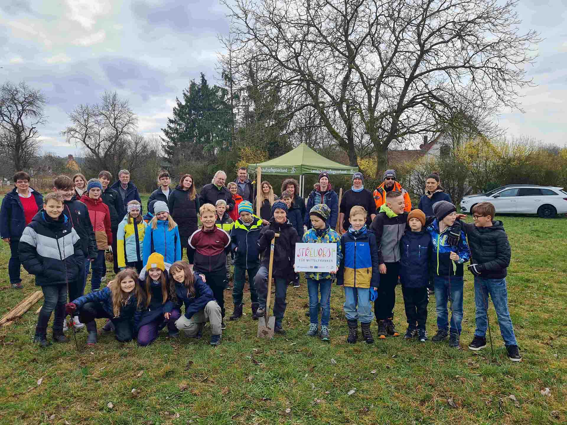 Erste Pflanzung im Landkreis Fürth im Rahmen des Projekts Streuobst für Mittelfranken zusammen mit der Grundschule Roßtal.