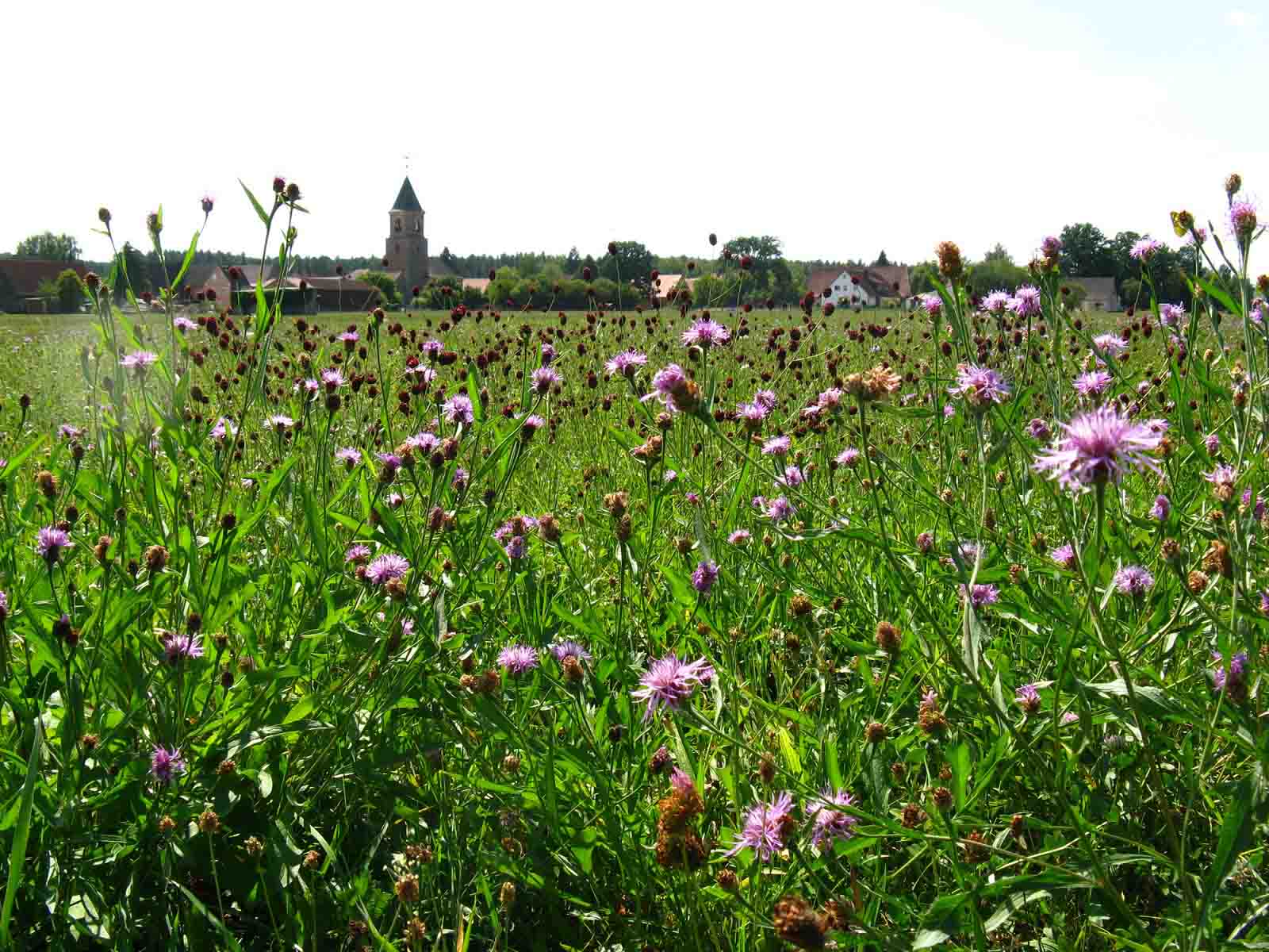 Blüten- und artenreiche Wiesen sind Heimat vieler Schmetterlinge, Heuschrecken und der immer seltener werdenden typischen Blütenpflanzen wie Wiesen-Glockenblume, Margerite, Labkraut, Wiesen-Salbei – um hier nur einige wenige zu nennen. Daher ist es auch ein großes Anliegen z.B. im Biotopverbund, wieder blütenreiche Wiesen auch Wiesenstreifen und Kleinflächen zu schaffen.