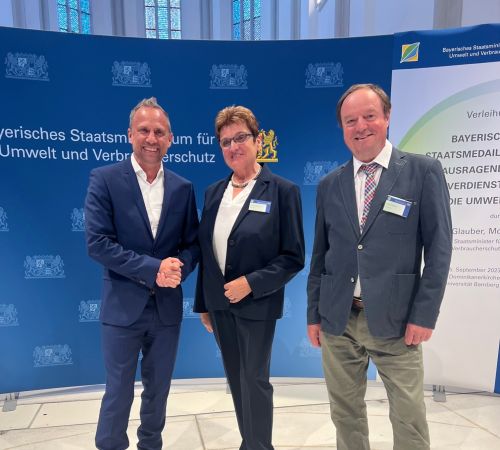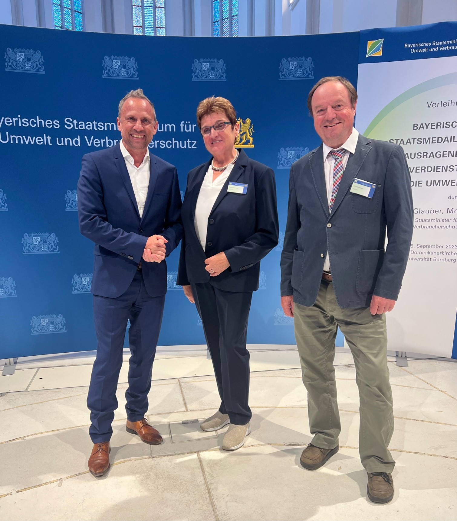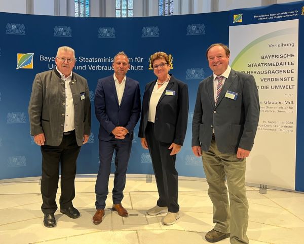 Gleich zwei langjährige Vorstandsmitglieder des LPV wurden mit der Bayerischen Staatsmedaille für besondere Verdienste um die Umwelt ausgezeichnet. Staatsminister für Umwelt- und Verbraucherschutz Thorsten Glauber würdigte den Einsatz und das Engagement von Gerda Schönleben und Ulrich Meßlinger.