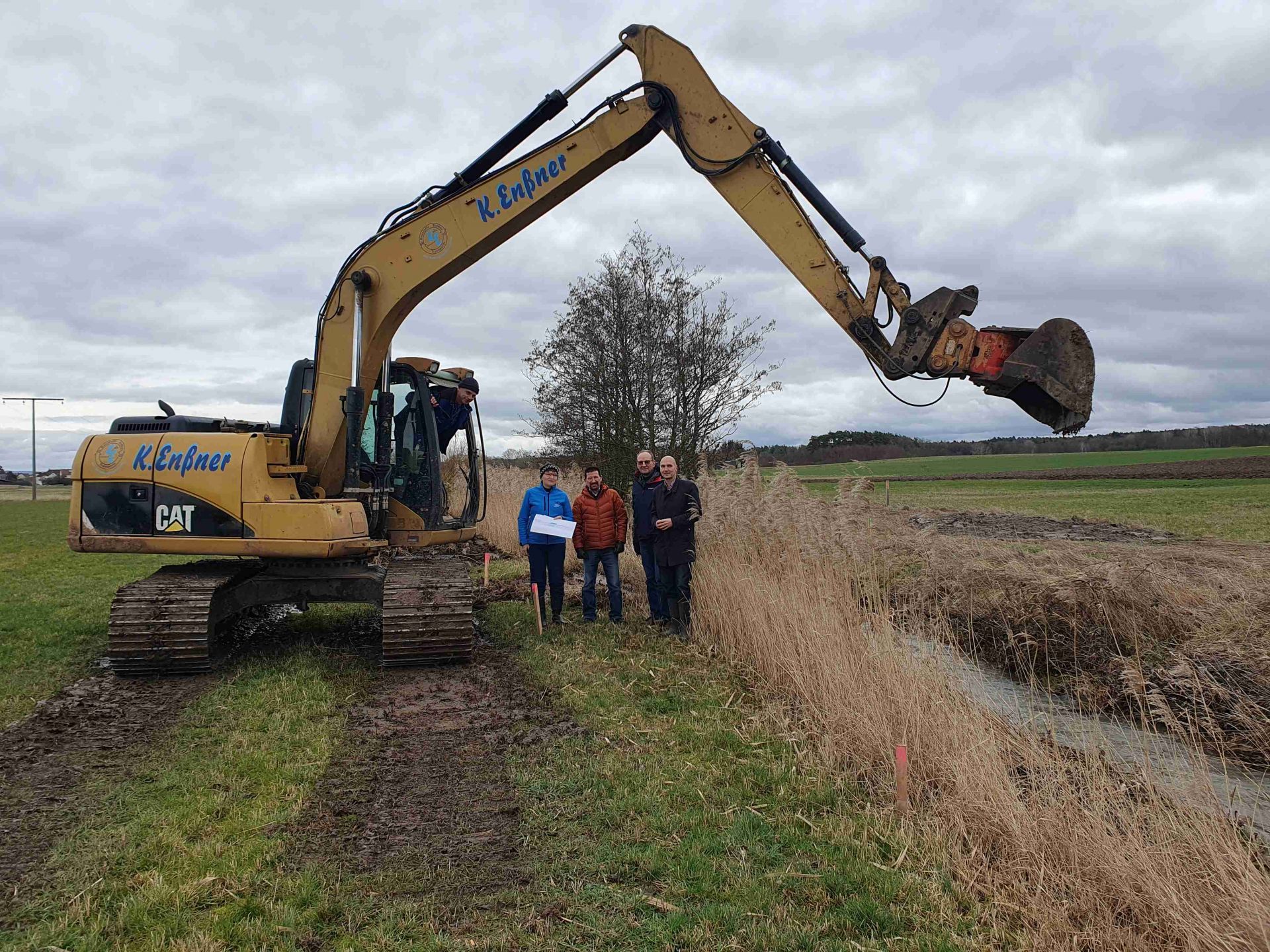 Entlang des Baches wird ein so genannter Gewässerrandstreifen entwickelt, wie dies sowohl vom Umweltministerium als auch vom Wasserwirtschaftsamt gefordert wird: Die Wiesen wurden bisher zum Großteil bis an die Uferböschung intensiv bewirtschaftet. In Zukunft wird jedes Jahr nur ein wechselnder Abschnitt gemäht. Es kann sich so ein artenreicher Ufersaum aus Mädesüß, Blutweiderich und Schilf ausbilden, der wertvoller Lebensraum für eine Vielzahl von Tierarten wie z.B. Libellen und Vögel ist. Er stellt einen Puffer zwischen den gedüngten Wiesen und dem Bach dar. So werden die Einschwemmung von Erde, Mähgut und Nährstoffe in den Bach vermieden. Zur Beschattung des Baches werden vor allem auf der Südseite Kopfweiden gesteckt und Bäume gepflanzt. Die Pflanzungen müssen gut gegen den Biber geschützt werden, der hier auch vorkommt. Außerdem werden sich auf den offenen Bodenflächen schnell Weiden und Erlen aussäen.