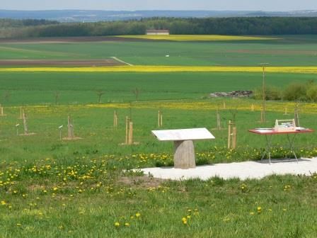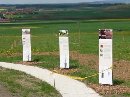 2001 wurden vom Landschaftspflegeverband Mittelfranken im Landkreis Weißenburg-Gunzenhausen in ausgewählten Bereichen alte Obstbestände kartiert. Über 200 oft viele Jahrhundert alte und mittlerweile sehr seltene Apfel- und Birnensorten wurden dabei nachgewiesen. Über 100 dieser pomologischen Raritäten finden seit 2006 auf der Obstarche eine „neue" Heimat, damit auch die nachkommenden Generationen in den Genuss dieser einmaligen Apfel und Birnenvielfalt kommen. Dabei wird jede Sorte an Hand von Informationsschilder vorgestellt.