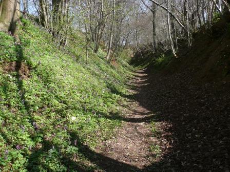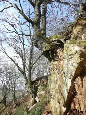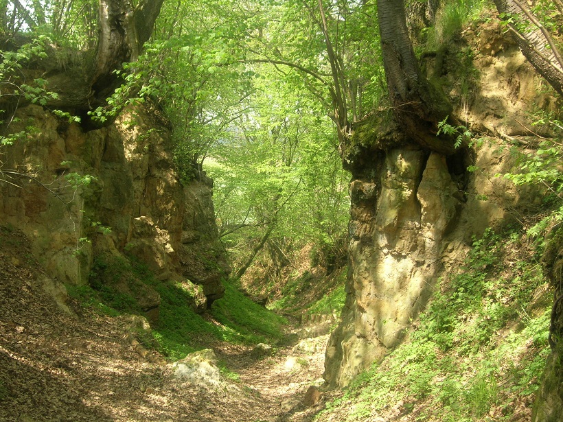 Über Jahrtausende entstand im Sandstein des Hahnenkamms ein beeindruckender Hohlweg von atemberaubender Schönheit. Gemäß dem Sprichwort „Steter Tropfen höhlt den Stein“ spülten Wassermassen fort, was sie selbst, Viehtrieb, Fuhrwerke und das Fußgetrappel fleißiger Kirchgänger vom Boden lösten, und schufen so den Hechlinger Hohlweg. Dieser war früher einer der Hauptverkehrswege von Hechlingen zu den Äckern und Weiden auf dem Kapellenberg. Mit einer Länge von gut 250m und einer Tiefe von bis zu 9m ist er einer der größten und beeindruckendsten Hohlwege der Region. Heute führt, beginnend am Gasthaus Forellenhof, ein 1,2km langer Lehrpfad durch den beliebten Verbindungsweg bis zur Katharinenkapelle. Spannende Tafeln erzählen die Entstehungsgeschichte des Hohlwegs, landschaftlichen Besonderheiten der Region und der Geschichte der Kapelle. Von der Katharinenkappelle kann man einen wunderschönen Ausblick über die Landschaft des Hahnenkamms genießen.