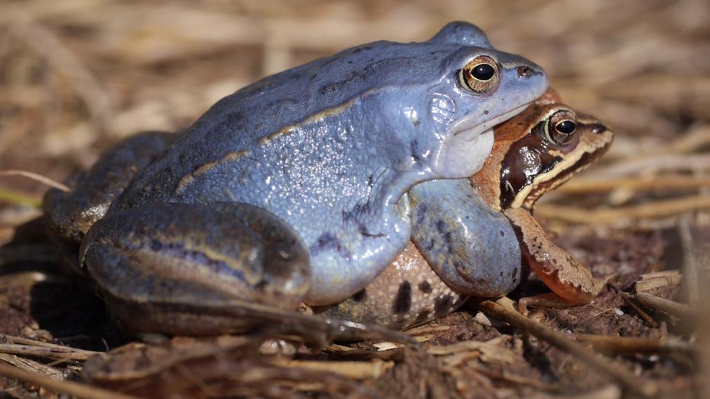 Während der Laichzeit sind die Männchen des Moorfrosches blau gefärbt – ein einmaliges Naturschauspiel!