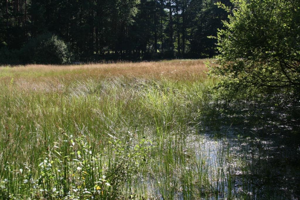 Aufgelassene Weiher verlanden und entwickeln sich häufig zu Niedermooren, die nur noch selten von Wasser überstaut werden. Hier bilden die Torfmoose dicke Polster.