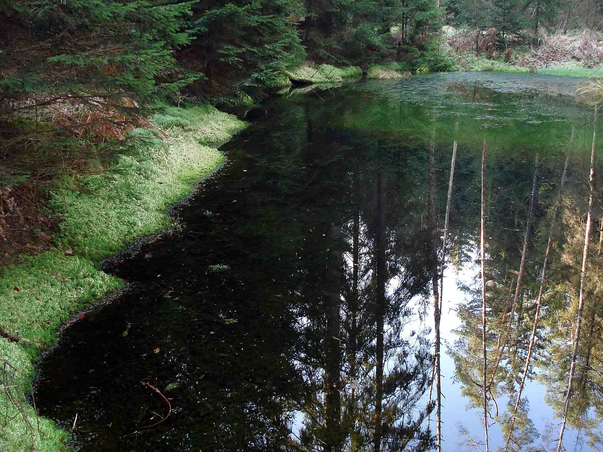 Zwischen Höchstadt und Erlangen erstreckt sich eine der größten Teichlandschaften Deutschlands - der Aischgrund. Neben einer Vielzahl von mehr oder weniger intensiv bewirtschafteten, nährstoffreichen Karpfenteichen findet man am Anfang von Teichketten oder im Wald auch nährstoffarme Moorweiher. Die meisten dieser Weiher sind so genannte „Himmelsweiher“, die nur vom Regenwasser oder von kleinen, sauren Zuflüssen aus dem Wald gespeist werden.